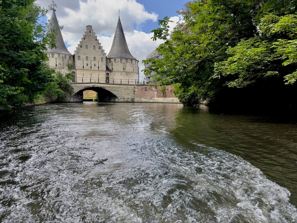 Weil unsere maroden Füße auch Entspannung brauchen buchen wir kurzerhand eine Bootsfahrt an der Leie, die Perspektive vom Wasser aus ist wieder anders und sehr eindrücklich.