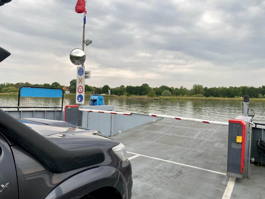 Wir starten zeitig nach dem Verwöhn-Frühstück, der Tipp von Thommy ist perfekt. Die kleine Fähre über den Rhein zwischen Drusenheim und Greffern erspart uns den nächsten Stau, das ist easy und sogar gratis, wir waren die einzigen an Bord.