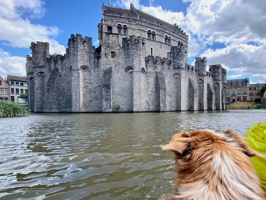 Erfreulich hundefreundlich ist man in Belgien, Flora braucht nicht mal einem Beißkorb für die Busfahrt, in Spanien oder Portugal darfst du mit Hund gar nicht einsteigen auch nicht mit Maulkorb. Wir sind zeitig am Weg, also geht es noch ohne Touristenmassen.