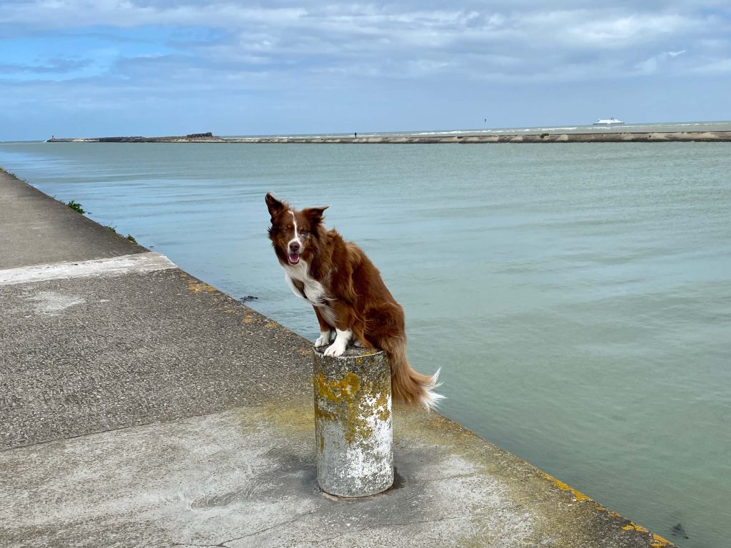 Auch hier ist der Hund kein Problem, Flora beäugt allerding nur das gefiederte Wassergetier.
