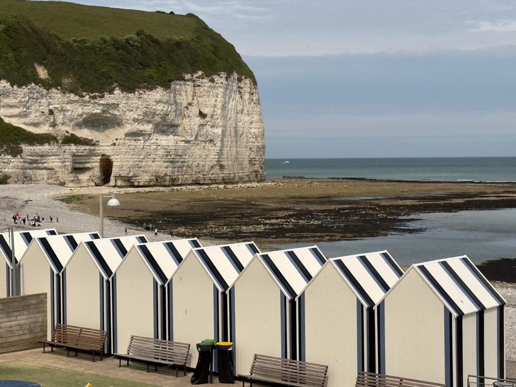 Die Orte dieser Hochblüte der Kultur sind Deauville und Trouville-sur Mer. Zuvor gehen wir noch vom CP hinunter in das kleine Hafenstädtchen Yport, auch heute gefallen uns die Kreidefelsen im weichen Licht, die den Hafen so malerisch umrahmen.