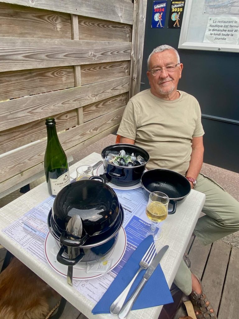 Was wir untrüglich wissen ist, dass wir Hunger haben. Ein einladendes Restaurant bietet Moules au cidre – avec créme, pommes et Cidre an! Genau das Richtige für unseren Gusto. Dazu eine Flasche Cidre brut, das ist jetzt ist unsere Belle Épouque.