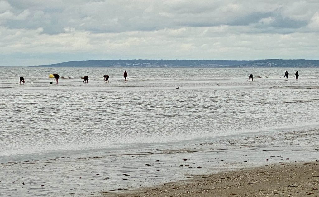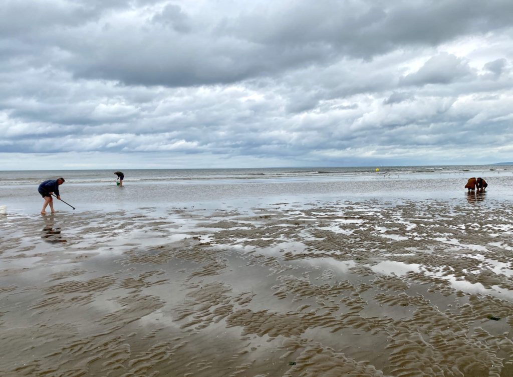 Am endlosen Sandstrand sind bei Ebbe viele Einheimische unterwegs zur Muschelsuche, ausgestattet mit Kübel und Rechen. Da machen wir gleich mit, finden tatsächlich auch einige Muscheln, die wir aber schlußendlich herschenken, denn es reicht nicht für eine Mahlzeit für uns.