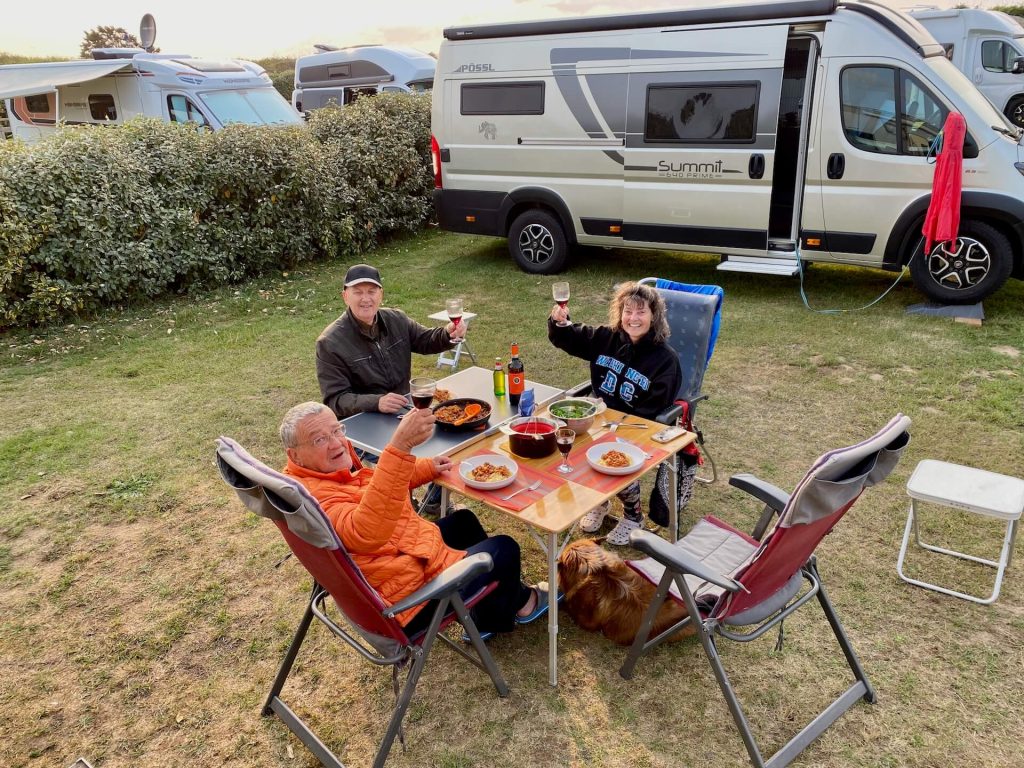 So kehren wir zurück zu unserem CP in Merville-Franceville, auch Lisa und Elmar kommen von ihrer Tour zum Utah Beach zurück und Wolfgang verwöhnt uns alle mit ThunfischSpaghetti.