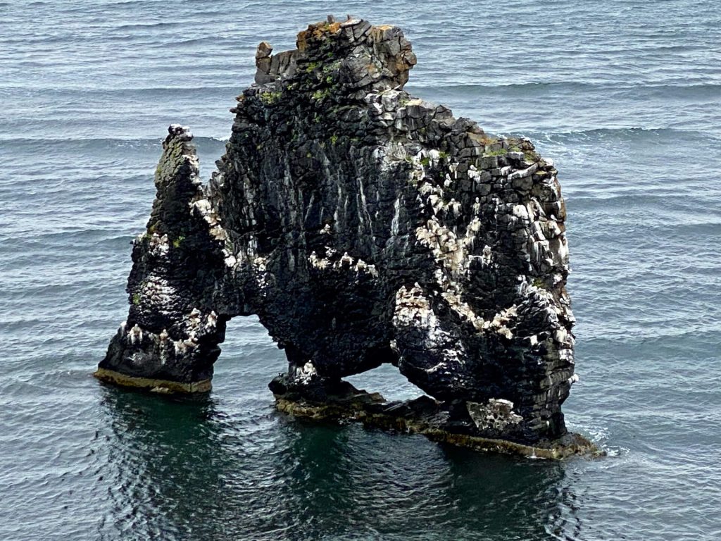 Das Felsentor von Hvitserkur lassen wir uns nicht entgehen, ist in jedem Reiseführer abgebildet und liegt sozusagen am Weg. Stimmt so nicht ganz – es steht im Meer 🙂 Gott sei Dank kein Umweg, wir sind nämlich ein wenig enttäuscht. So klein haben wir es uns nicht vorgestellt, von oben herab sieht halt alles anders aus. Die Perspektive macht’s!