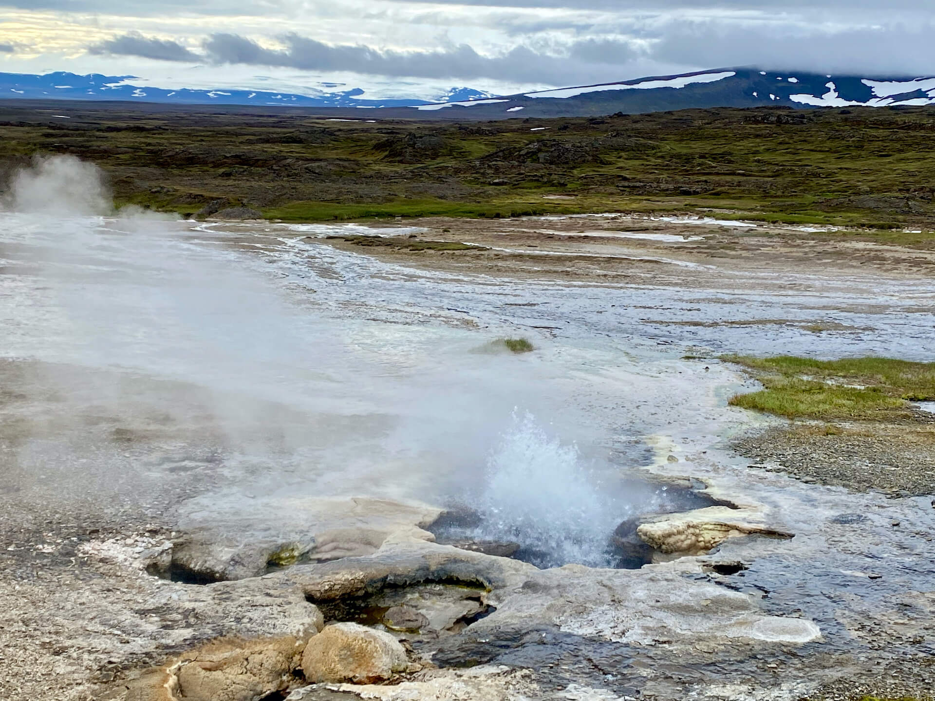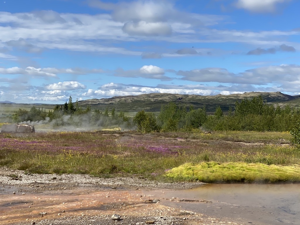 Hveravellir ist unser nächstes Ziel, wir erreichen es über einige Nebenstraßen, die uns durch herrlich grüne, fruchtbare, einsame Täler bringen.
