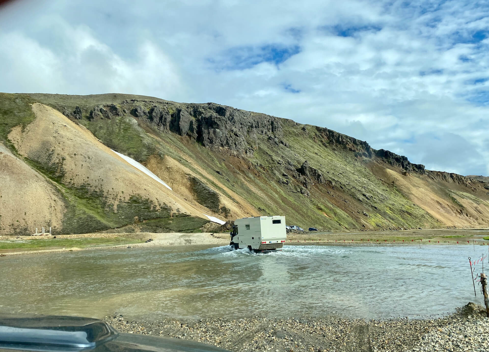 Daher freuen wir uns darüber dass wir hier sind, sehen den verschiedenen Fahrzeugen – bzw. den Drivern – zu, wie sie die letzten 2 relativ tiefen Furten meistern und schmieden Wanderpläne für den nächsten Tag.