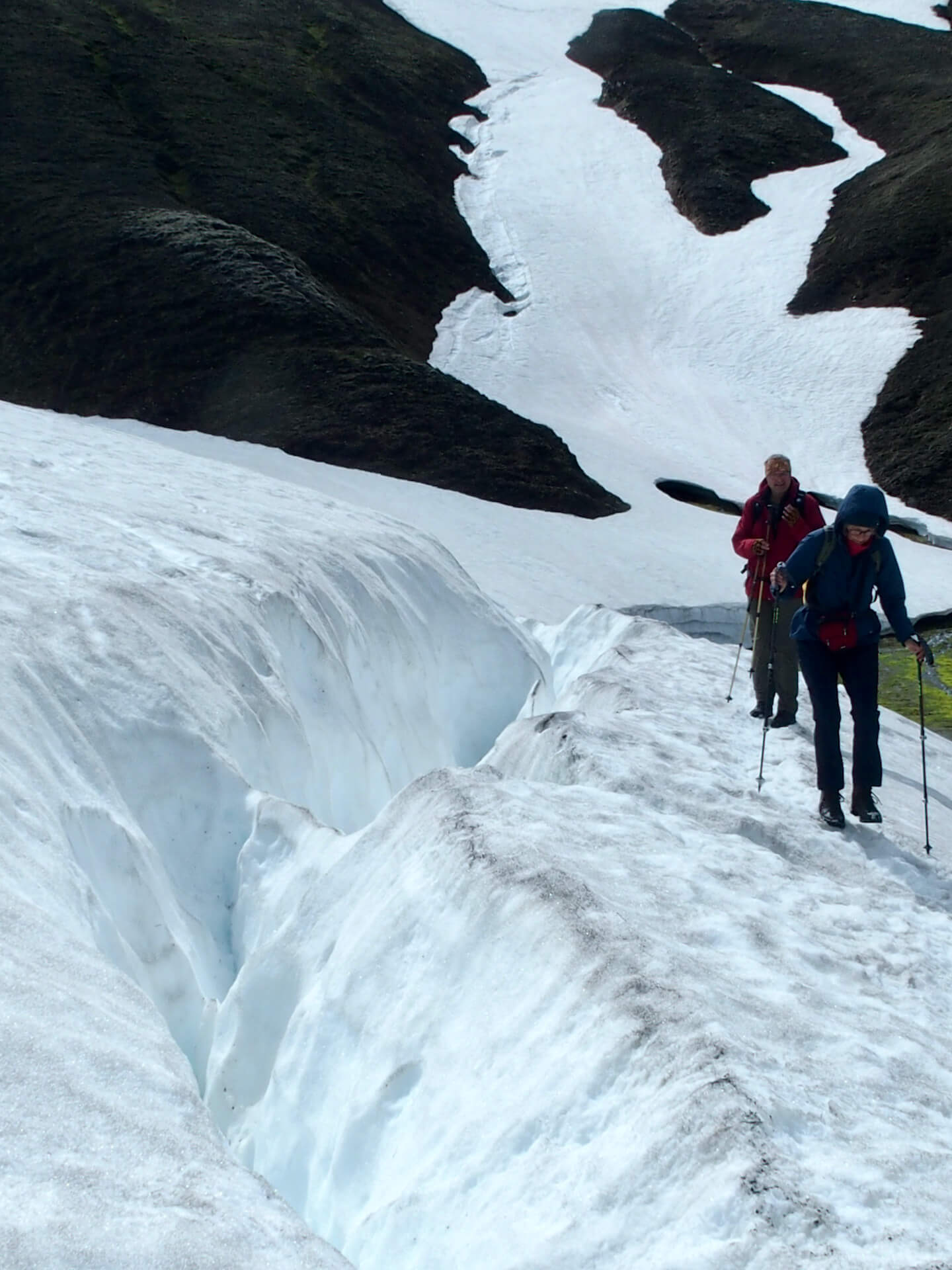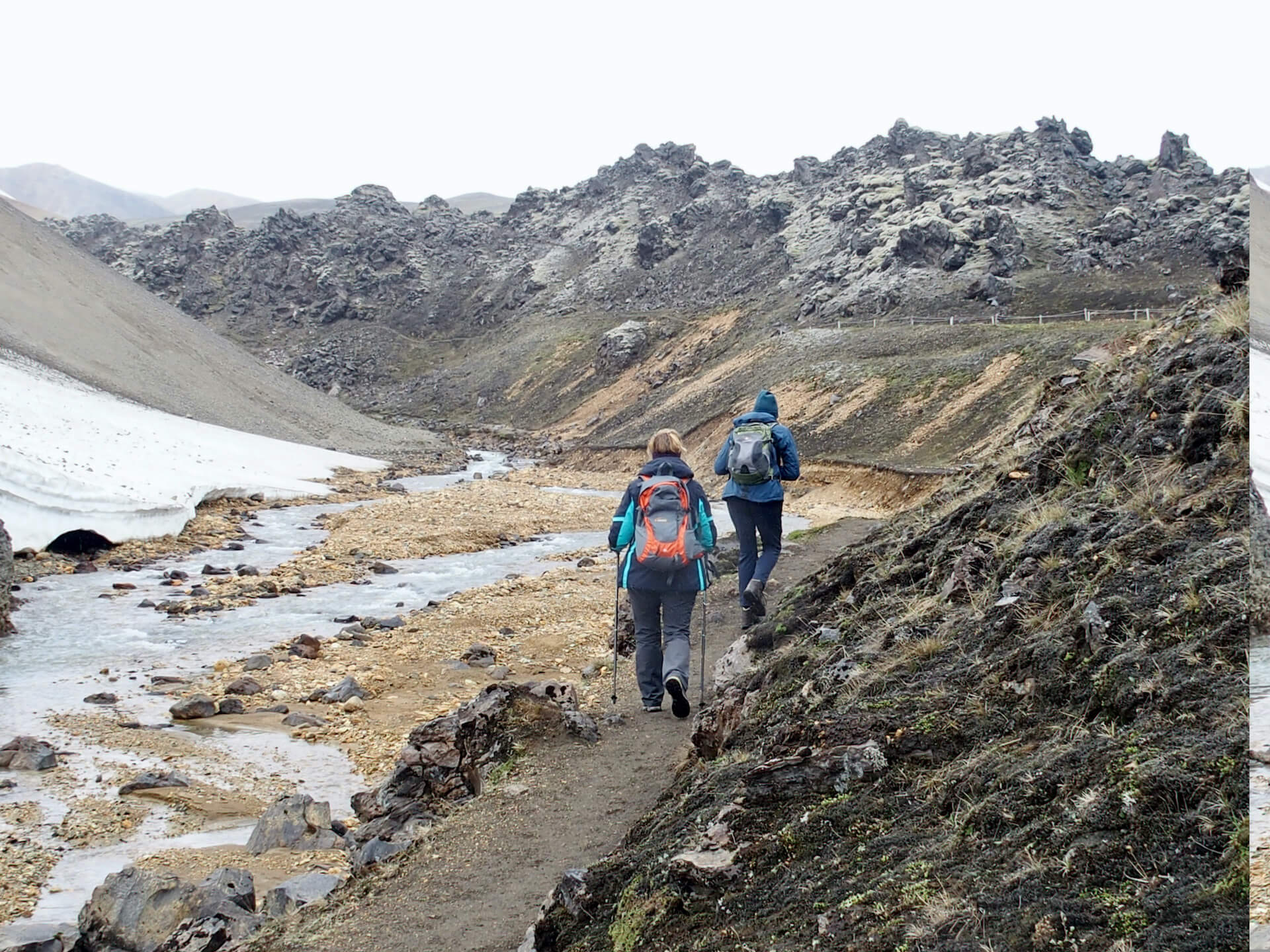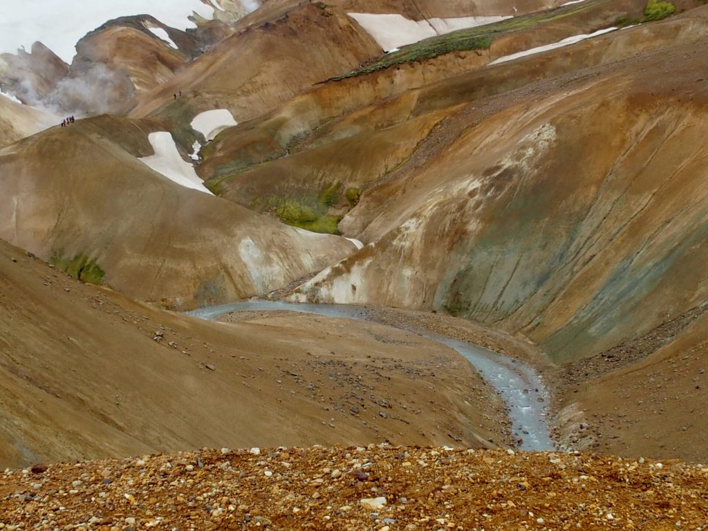 Heute will der „bunteste Berg“ – der Brennisteinsalda (881m) erklommen werden. Er leuchtet nicht nur in der schönsten Farbenvielfalt, er hat auch einige Schneefelder übriggelassen, die es zu überqueren gilt.