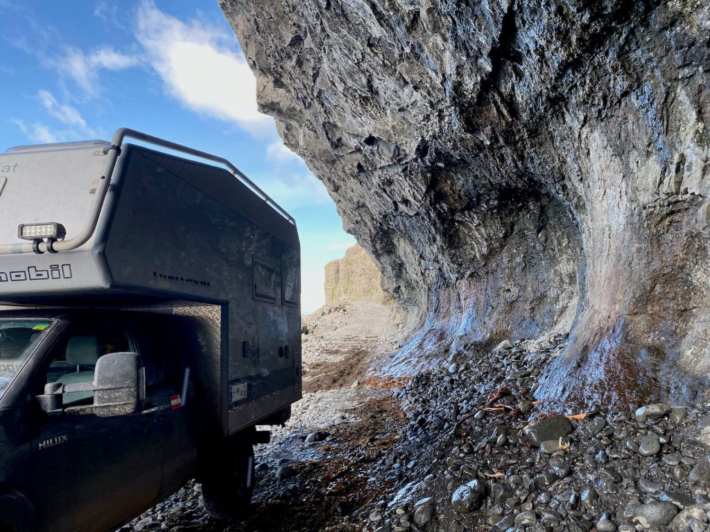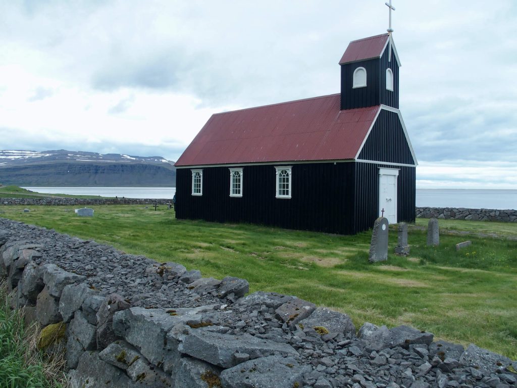 Die Kirche von Saurbær gefällt uns auch, aber unser Nachtplatz in Melanes ist wirklich der Hammer. Wir stehen direkt vor dem roten Strand, das Meer ist noch immer aufgewühlt, stürmisch und wütend, die finsteren Wolkentürme drohen, aber alles bleibt harmlos.