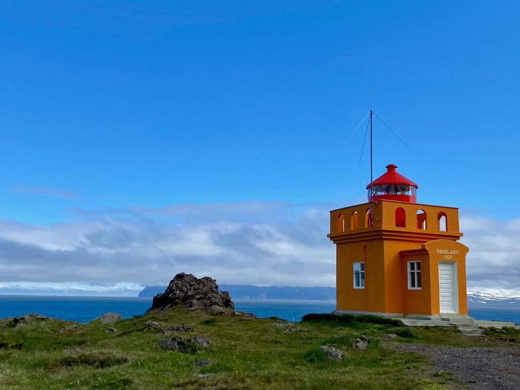 An der Spitze der Halbinsel steht ein Leuchtturm, vereinzelt sieht man ein verlassenes Gehöft.