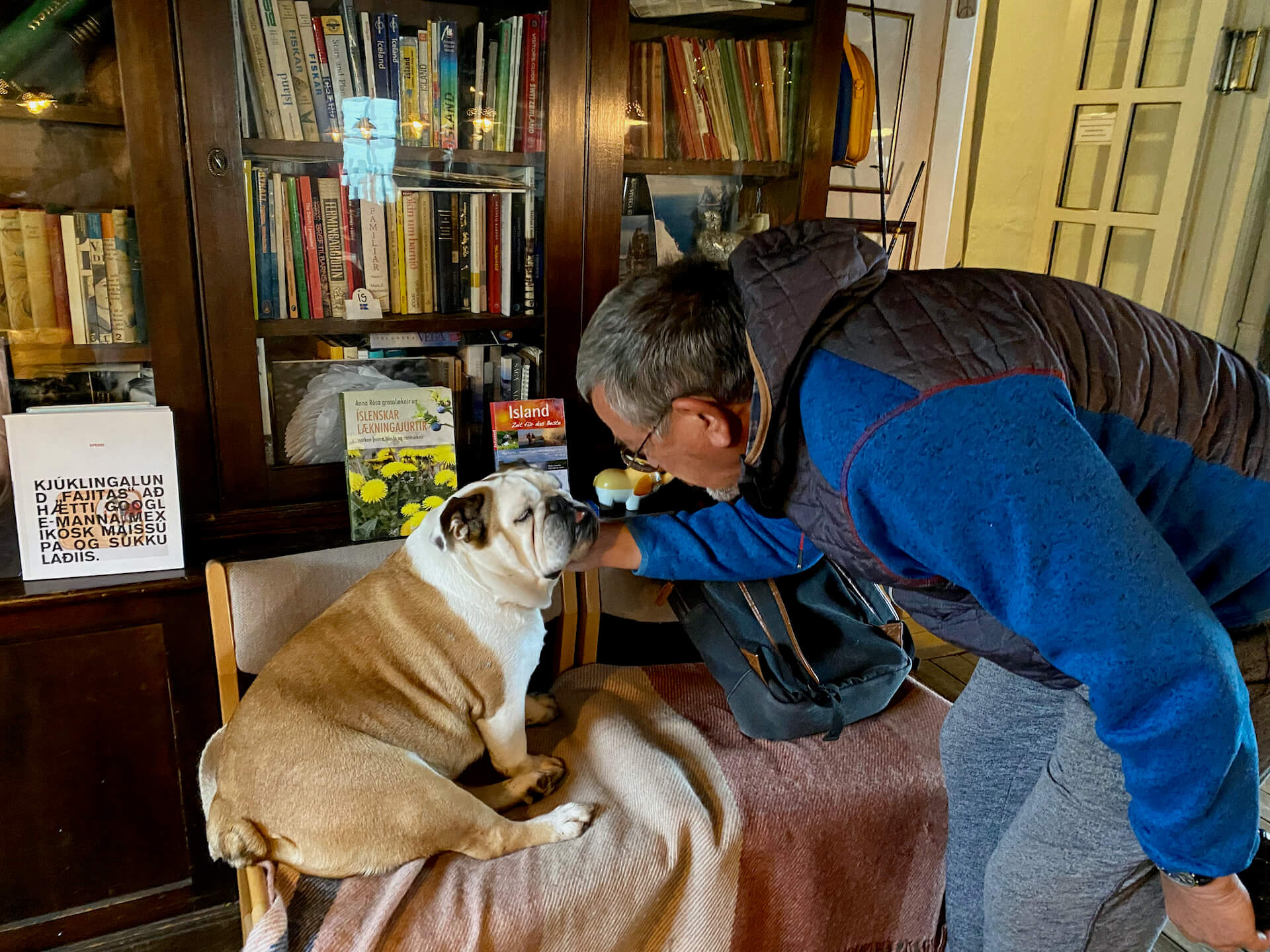 In dem gemütlichen Hotel finden alle was sie brauchen. Heißen Kaffe, herrliche Waffeln und für den Wolfgang gibt es einen Hund zum Steicheln 🙂